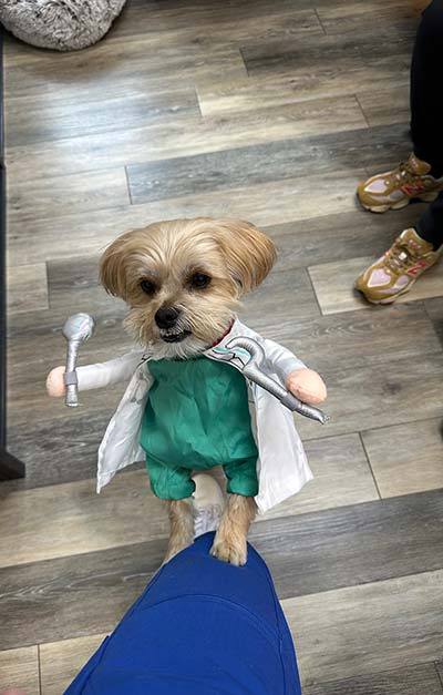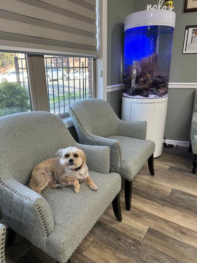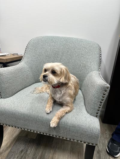 Meet our in-office pup and friendly fur mascot, Sullivan! With a collection of nicknames including Sully and "The Governor" – because he takes his job of watching out the window very seriously – you may find Dr. Alissa’s sweet dog working a shift at the front desk during your next visit to Roman Dental Arts. Sully loves greeting patients, offering emotional support, and bringing a little extra joy to the office.